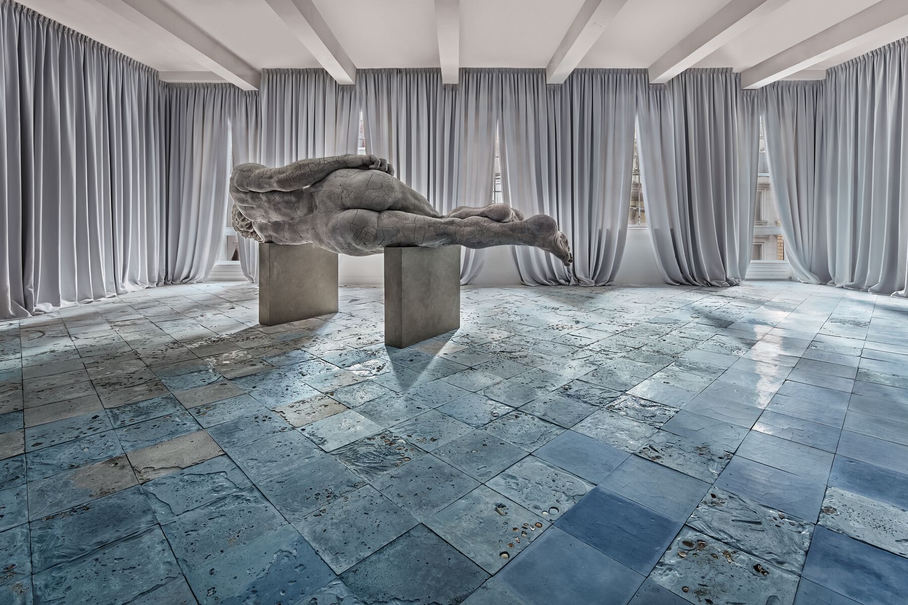 In the New York chapter, the rooftop of the Metropolitan Museum of Art becomes the setting for an examination of the compartmentalization of “world history” based on a white Eurocentric paradigm, and for the possibility of its deconstruction, starting with a counter-hegemonic geopolitical-poetic reorganization. Following a several-months-long process of research and selection in the different departments (Arts of Africa, Oceania, and the Americas, Greek and Roman art, medieval art, the American Wing, et cetera), I arrive at a kind of convulsion of official chronological, geographic, ethnic, and cultural divisions.