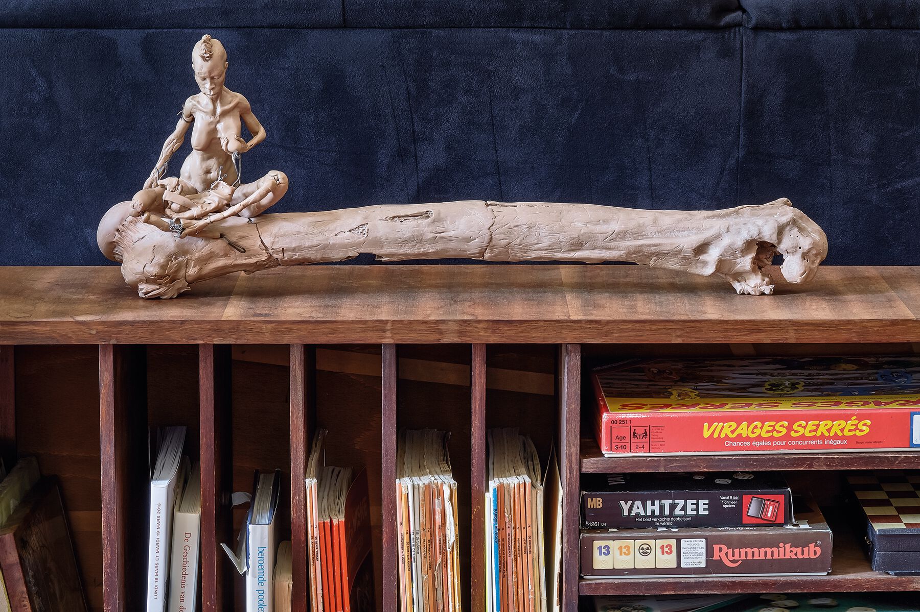 That is where the first sculptures appear, in that whirlwind of three-dimensional stimulation, modeled out of two materials that are diametrically opposed in their durability: clay and epoxy. The raw clay figurines and objects will disappear in a matter of weeks once the project is dismantled. The epoxy ones (the busts of the tragic couple, for example) are still on top of the souvenir display case at my parents’ house, intact, like the youthful melancholy beauty of lovers.