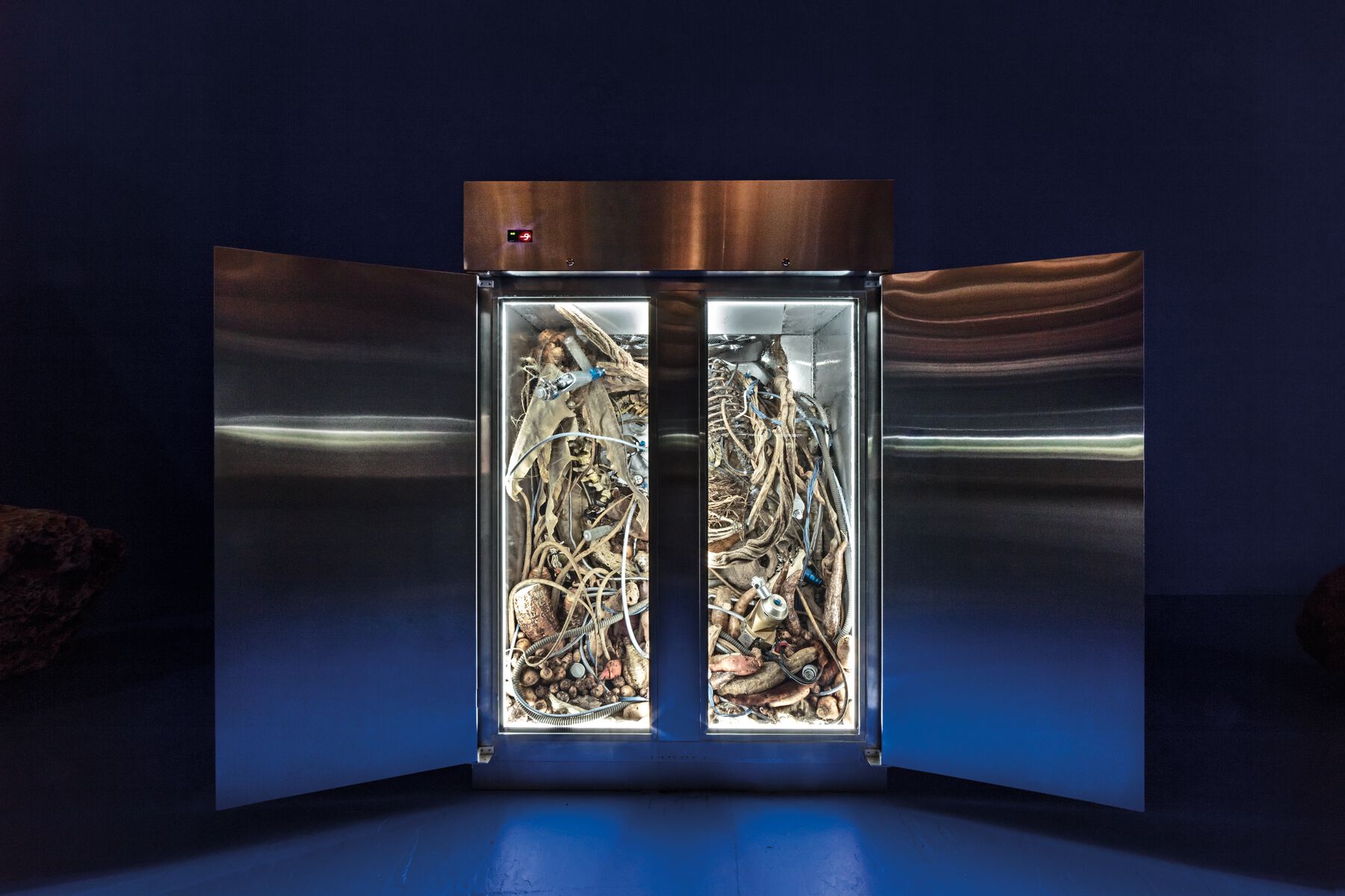 When the planet reboots, it will find its whole system reconfigured. The echo of a world at once in silent agony and in continuous transformation will appear on the specially designed shelves, as if in an alien warehouse, inside the new Serpentine Sackler space (a former gunpowder store repurposed by the institution, and now also adulterated for this project by my team of architects). Potatoes, onions, apples, mushrooms, beans, leaves of plants, all of that still-timid life that is now woven into the “suicidal sculptures” germinates, grows, rots, dries up, attracts more life—insects, bacteria, microorganisms. It radicalizes a logic that will be key from this point forward, namely the openness and plasticity of the “object” that becomes a porous system in permanent interaction with the environment, yet with more morphological possibilities that are less predictable, while the incorporation of new biological structures multiplies the diversity of behaviors and the physical-chemical reactions of its components.