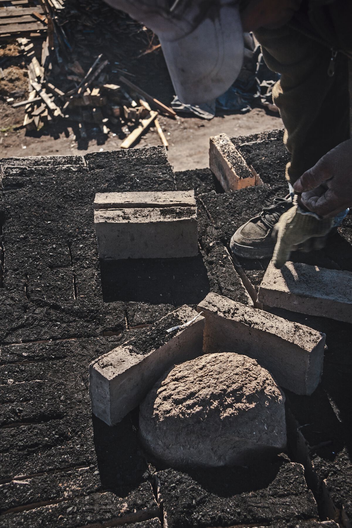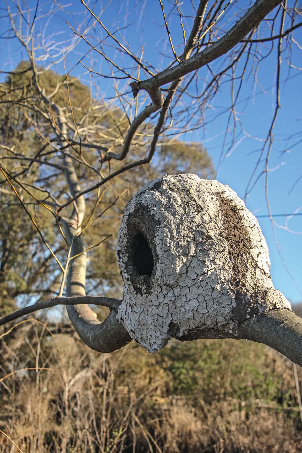 The horneros make use of the technologies and resources of the Anthropocene, building their nests not only in tree branches but on utility and telephone poles, building facades, window ledges, air conditioning and ventilation units, urban traffic lights, and pretty much any other opportune spot to serve as the foundation for their construction. The birds use the nests for just a single reproductive period, abandoning them once their offspring are ready to fly. Veritable abandoned residential complexes, sometimes with five or six units stacked atop one another, grow silently in the cities and towns of the Argentine Humid Pampas. You only have to look in the right spots to find them. My collaborators did just that. They began to track down and gather these abandoned nests from the brickworks’ surroundings, instantly associating them with their own work as sculptor-builders. The team started using them in different experiments with clay and with the artisanal firing techniques of the brickmakers. It was the start of a project with no temporal or territorial boundaries: to expand the architecture of this unique South American avian species across the planet.