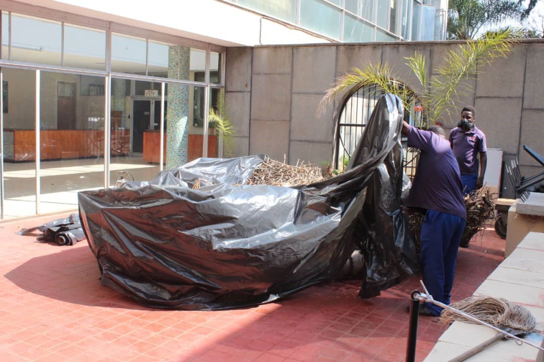 The National Gallery of Zimbabwe was officially established in 1952 through an act of parliament, and opened to the public in 1957 as a center for exhibiting sculptures, paintings, drawings, print works, and installations by Zimbabwean and international artists. It acquires traditional and contemporary art from local and international artists through loans, bequests, purchases, and donations, and likewise exhibits both traditional and contemporary art. An appropriate environment must be provided for the conservation of all artworks on view, and thus the exhibition of living matter as contemporary art can be a challenge due to its fragile and complex nature.
