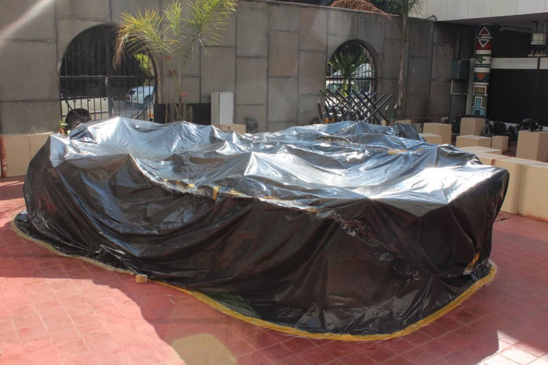The exhibition team proactively addressed potential pest hazards. The nests prepared for the egg-laying chickens were to be made from logs gathered in the forest—these nests would be more cost effective for the gallery compared to buying specially prepared nests from the market—but they posed a greater possibility of pest infestation on both the chickens and other artworks made from organic materials. Thus, the nesting materials were treated with pesticides, followed by covering them with black polyethylene sheets and placing them for a prolonged time in the sun to kill any pests present (fig. 8.1, fig. 8.2a, fig. 8.2b). This was a low-cost method of preventing pest infestation in the gallery, since the gallery had no fumigation chambers.