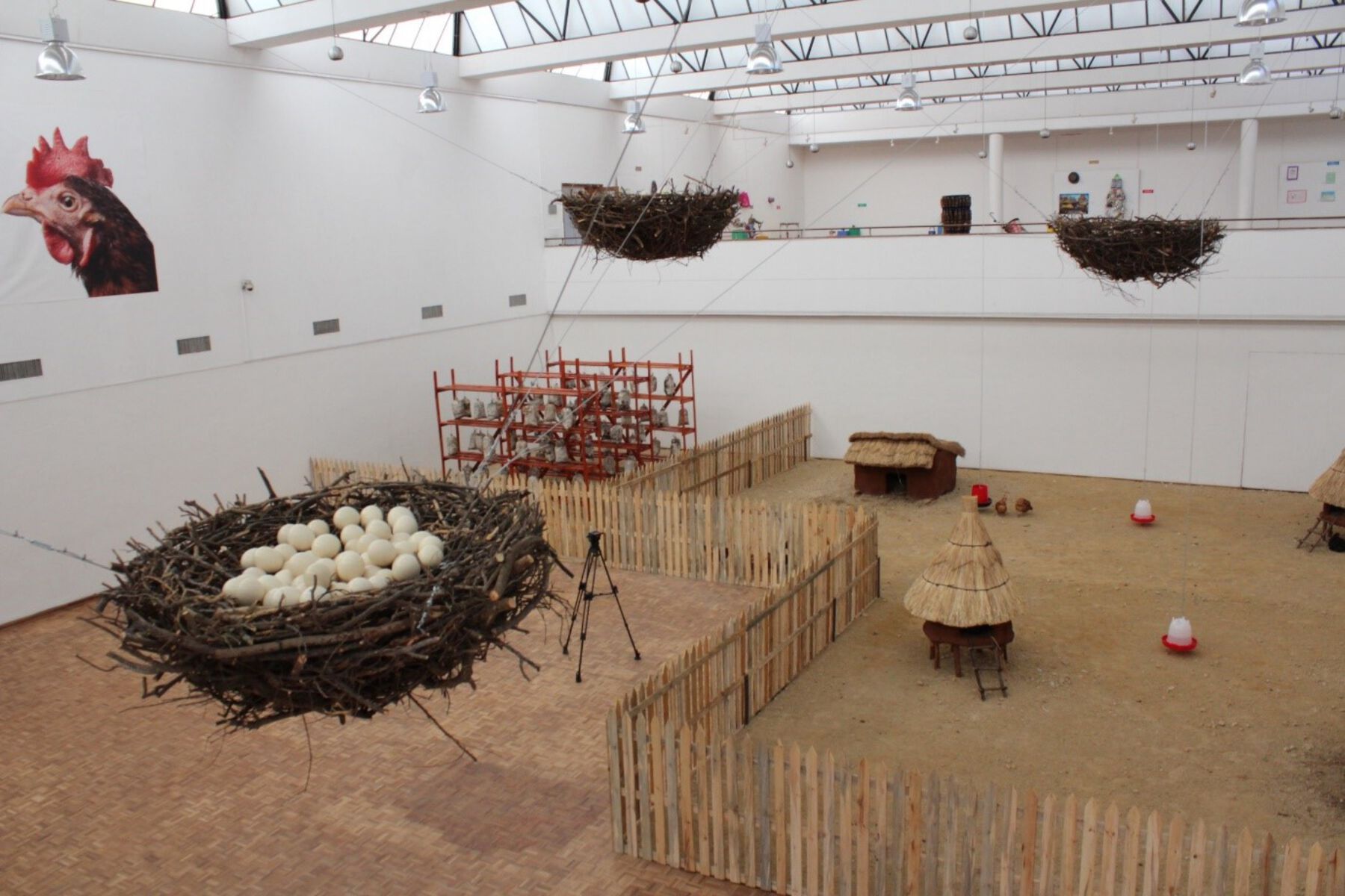 The exhibition was an intricate one, demanding a conscious conservation mindset to keep the chickens alive as well as ensuring that the chicken eggs and mushrooms remained fresh for the month-long duration of the show. Caution was also taken to prevent potential pest infestation of other artworks, especially those composed of organic materials, for instance sculptures, paintings, drawings, or prints made using wood or paper.