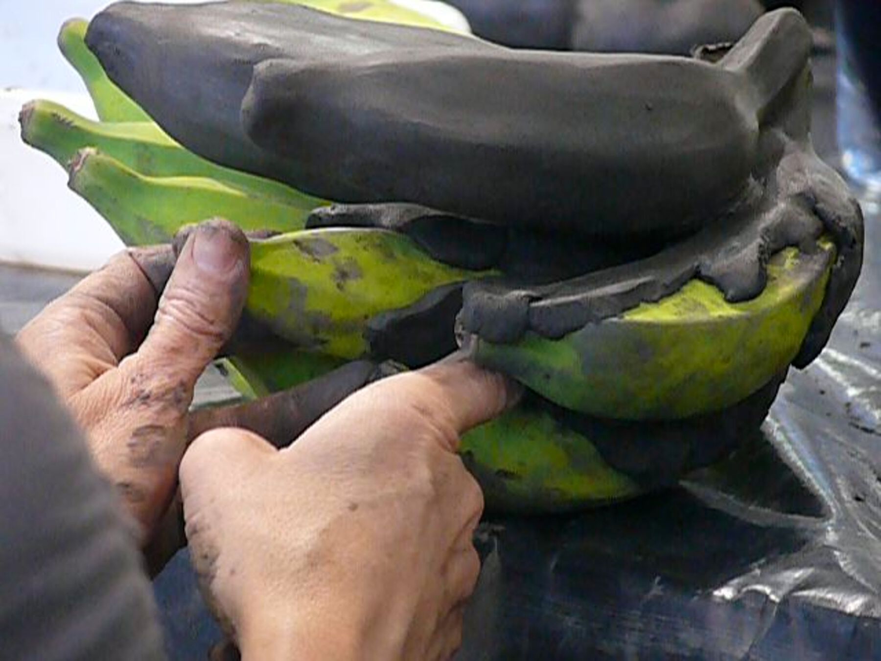 a daily review to find fruits or vegetables that may have decomposed (leaking liquid or foul odors) and eliminating them along with their fragments. If they exhibit very disagreeable odors, spray the moldy parts with an antibacterial spray, but avoid spraying nearby vegetables that are in the process of sprouting. In the event of replacement, wrap the replacement item in raw clay one centimeter thick, seeking fidelity to the shape rather than the texture.