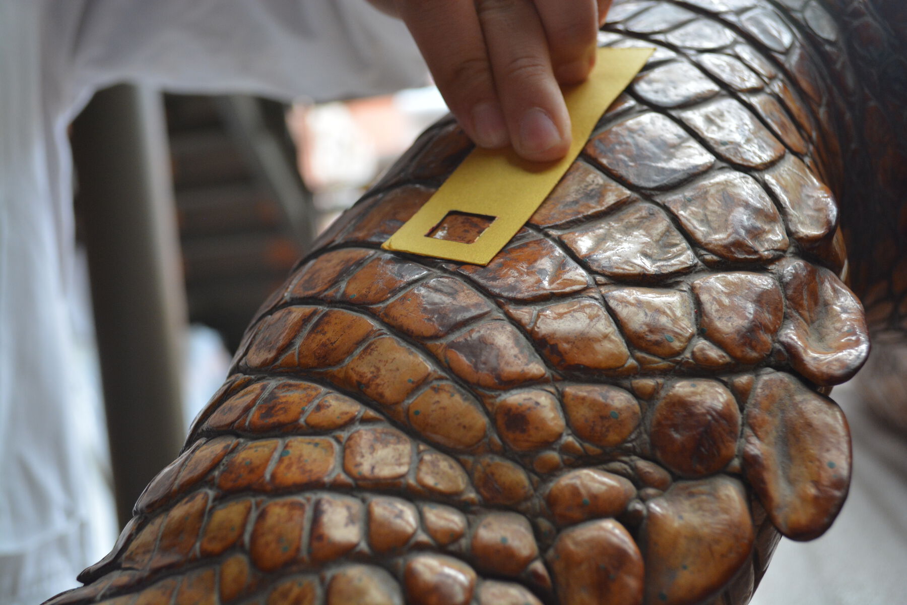 As a result of the daily work within the workshop-seminar, and as part of the collaboration with artists such as Darío Meléndez, Grupo SEMEFO, Antonio Serna, Marta Palau Bosch, and Noemí Ramírez, to mention but a few, research projects have been conducted that have resulted in the conservation and/or restoration of works made with materials such as maize leaves, coconut fibers, animal skin, embalmed horse fetuses, and a taxidermied crocodile. For instance: