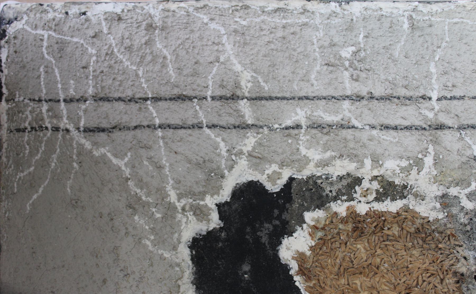 Antonio Serna, Untitled, 1984. Mixed media (oil, acrylic, mortar, pumice stone, and birdseed) on fabric.
