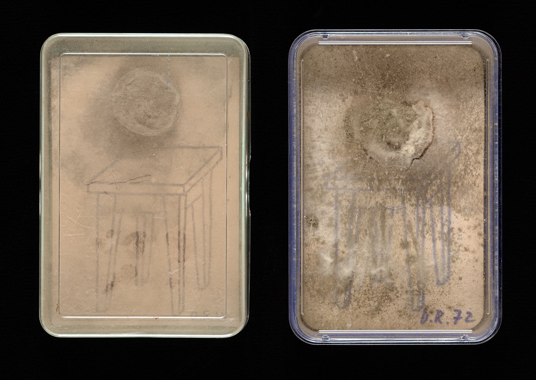 Compared to such tour-de-force gestures, Roth’s editioned multiple Taschenzimmer (Pocket-Room, 1969/1972, fig. 11.6) always struck me as an engaging piece that conceives a simple life for an artwork. It is an exhibition in a modest container—a cardboard box that opens to show a print of a table with a small piece of banana peel tacked on. Of the two in the GRI collection, one is quite moldy, and the other is dried out. One box has no lid and is possibly a variant edition. Roth’s deployment of the banana slice has to be intentional. Who is not familiar with the life cycle of a banana, and the fruit’s frequent use in jokes? Fortunately, several other versions in institutional collections are well documented. All have aged differently according to storage conditions, illustrating how resonant it is to use living matter in an edition in which initially identical works go out into the world and change according to their situations. Should the decayed fruit and mold in Taschenzimmer be cleaned up? Again, this would seem to contradict Roth’s intent. Better to just let its aging process proceed and make sure that the mold doesn’t migrate.
