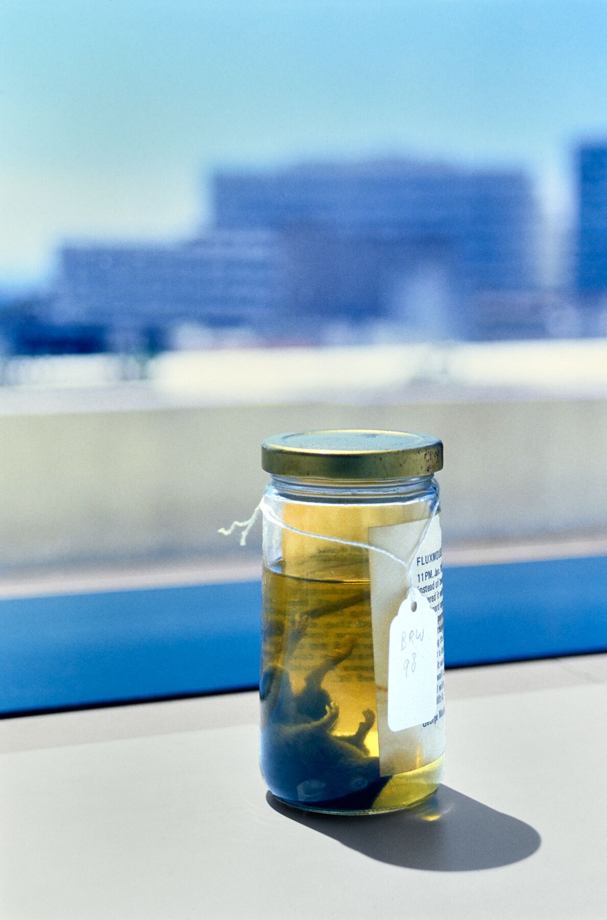 One Fluxus work by George Maciunas most certainly will not be considered for reproduction. In a glass jar, not plastic, the GRI’s Fluxmouse, no. 1 (1973, fig. 11.7) is preserved like a specimen in a natural history museum. Murdered by Maciunas, imprisoned in a jar, and packed in an archival box, this small dead animal is presently shelved in a dark vault. Full disclosure: conservators monitor this work, and have added liquid, so there has been some intervention even here. One could observe that although Fluxus artists did make works that include living matter, the mouse is significant in large part because it is no longer living. It has become art.