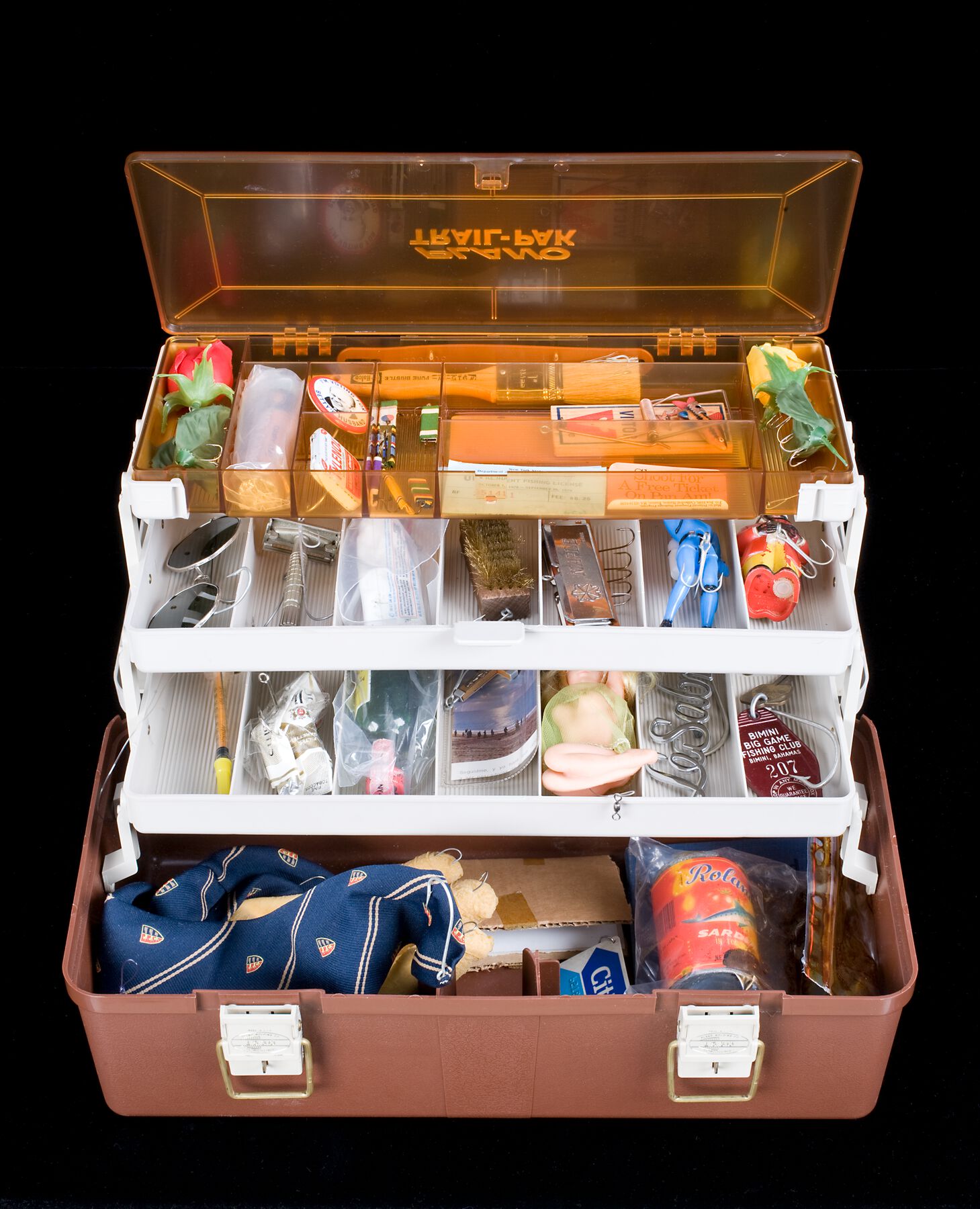 About fifteen years ago there was a true emergency, actually a confined but messy explosion in Fluxus artist and composer Benjamin Patterson’s tackle box Hooked (1980, fig. 11.8). The lid of the box swings up and opens out to reveal several shelves; each compartment holds an everyday object with a hook in it. It is a complex work with many parts, some of them moving. The box had been stored in an archival banker’s box, examined and stabilized by a GRI objects conservator. But when the box was brought out of storage it was smelly, and a sticky substance was oozing: a very old can of sardines in tomato sauce had exploded. Canned goods do have shelf lives, and this one had expired years ago. The conservator cleaned up the mess and assessed whether any of the other pieces were damaged; they weren’t. Pictures were taken; documentation was noted. But what to do now about the integrity of the work? Keep the old can, but not in the tackle box? The conservator did locate a very similar sardine can online, and purchased it. As with the Surrealist butterflies previously mentioned, should the can be replaced? Even if that would only start the clock for another explosion in the future?