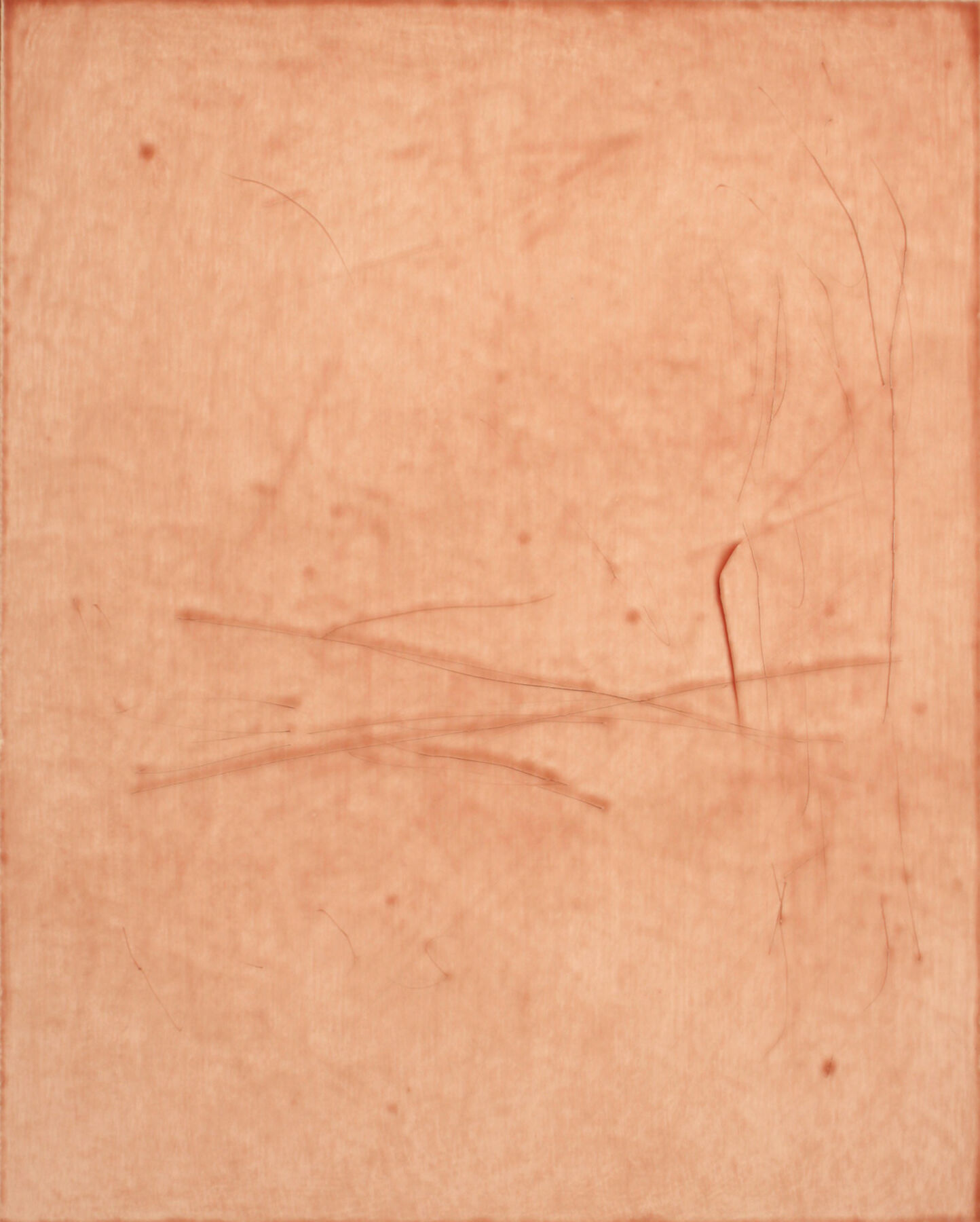 However, I think that all works change, and even if a work is destroyed it will continue to be the same work, since art does not vanish; it only changes. If a piece breaks, it exists as the same piece, only broken. It simply changes its existence through conditions, its character, time itself. The piece will be in continual evolution. That is the immanent of the permanent. There is a series in which I decided to use my blood (2008, fig. 22.3), which as well as containing energy, contains my genetic information. I diluted it in acrylic varnish and applied it to a cloth in various layers, perhaps thereby creating my first monochromes. Some time later, a collector who had bought one of these contacted me to report that although the work was not in direct sunlight, it had lost almost all its color after several years. This made me think that the work remains the same work even when it has lost color, because the genetic information is still there. Even though light or UV rays made the color disappear, the work continues to exist as such. I explained this to the collector and told him I was willing to take the piece back in exchange for something else. He asked me about the final destination of the piece he would be returning, and I told him I would keep it as part of the collection. On hearing this, the collector decided to keep it because he still liked it a lot—he was just worried about the color. In fact, from my perspective, the piece could not be remade, or discarded, or even less conserved and restored, its color brought back by reapplying diluted blood. The piece continues to be the same piece, only different, changing in some way as everything changes over time. This experience also supports the premise that Willy Kautz used for the book and exhibition Lo que no vemos, lo que nos mira (What We Don’t See, What’s Watching Us), presented at the Amparo Museum in Mexico City in 2014 ().