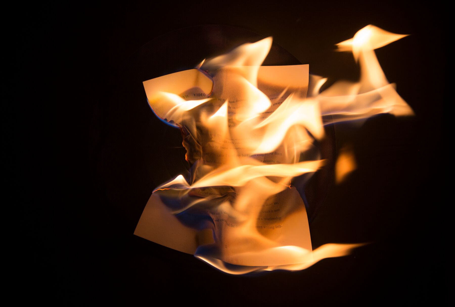 The series of burned papers was, in some way, the start of a phase in my career. I began in October 2007 in Mexico City, simply burning a sheet of white paper (fig. 22.4). The process of transformation was fascinating: seeing a flat, white sheet of paper turn into an irregular, black surface, then the black turns to gray and the paper is destroyed (fig. 22.5). I burned hundreds of sheets of paper until, for some reason, the change from black to gray stopped happening and the last sheet remained burned but intact. With this experiment, I started the series that took me ten years to finally finish in December 2017. It consists of sixteen works in total: forty-three burned papers in various individual groupings—diptychs, triptychs, and polyptychs of four, five, and six pieces. Four pieces of this series currently belong to MOCA in Los Angeles and the rest, which are constituted of the thirty-eight pages of my 2003 MFA thesis, belong to the Pratt Institute in New York. Those thirty-eight pages ended up as eleven pieces in the Pratt Institute because I wanted to respect the number of elements in polyptychs according to the number of pages of each chapter of my thesis. For conservation purposes, all I do to stabilize the ashes of the papers is to apply three layers of aerosol fixative for charcoal drawings to their backs. What is interesting about the series is how I start a process, and all the rest is far beyond my control. This led to several series afterward and, in addition to being some wonderful pieces, they formally and conceptually fulfill my idea of seeking a balance between the formal and the conceptual. The burned papers represent some of the more important pieces in my portfolio as an artist. The adhesives and paper I use are generally acid free, so under normal conditions they should keep well over time. It is important to mention that to date, fifteen years after starting the series, I have not had to conserve any piece.