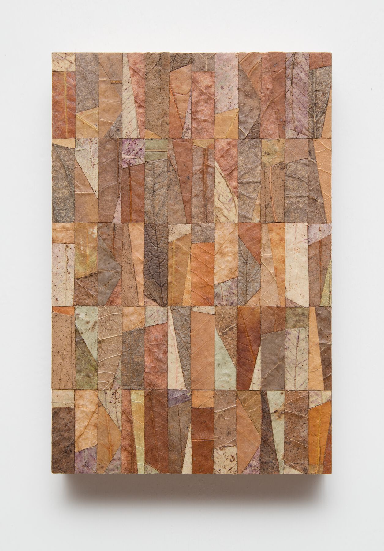 I use a great diversity of organic and inorganic materials, such as human hair, fingernails, human blood, bird feathers, fish scales, butterfly wings, leaves from various trees (fig. 22.6), tortillas, eggshells, edible materials such as soup noodles, or used elements such as discarded plastic, leather soles of shoes, ceiling tiles from late nineteenth-century homes, sheets of rubber, old aluminum printing plates, and laboratory microscope slides, or countless new (thus canceling the function for which they were created) materials that I gradually collect and classify. Things not being used for any series live in a storeroom as part of my archive.