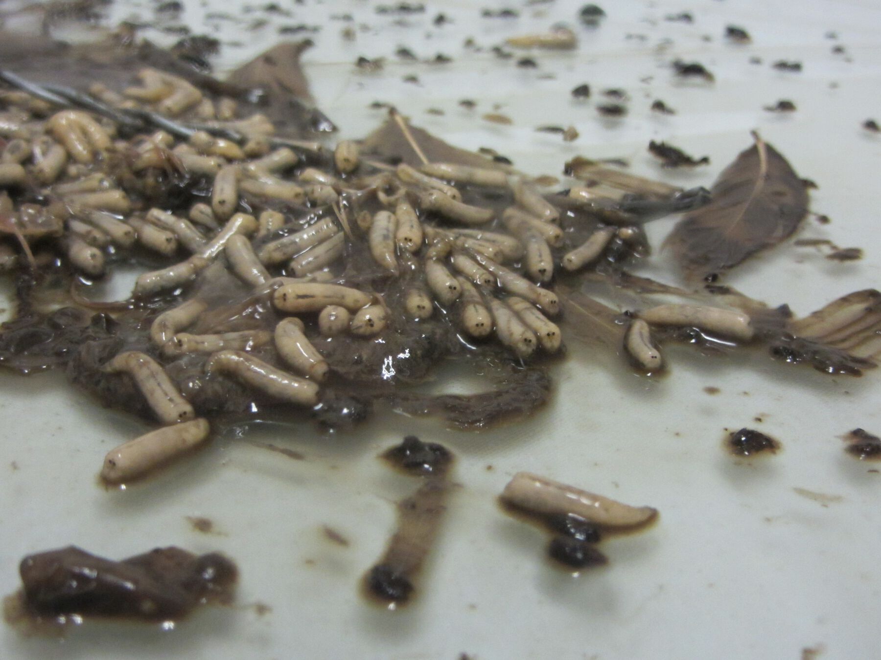 Of maggots, which oozed out like a heavy liquid