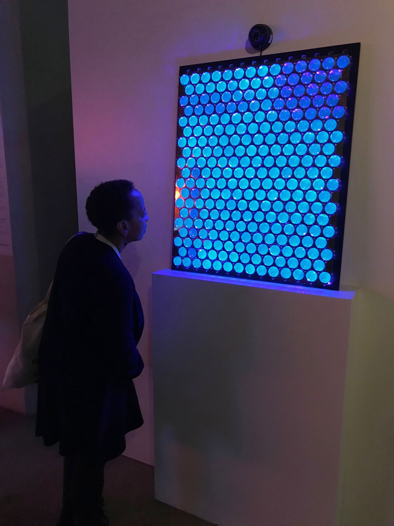 And finally, no regulatory issues at all occurred during the next venue of the sk-interfaces exhibition, Casino Luxembourg. In close coordination with that country’s Ministry of the Environment and taking the issue seriously several months before the opening, the venue deemed Takita’s piece as not presenting any danger of unintended release, and organized popular weekly demonstrations of the moss glowing in a specially constructed gallery room.